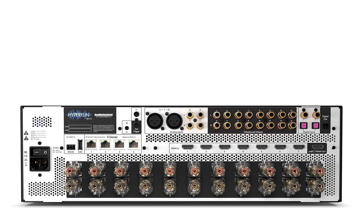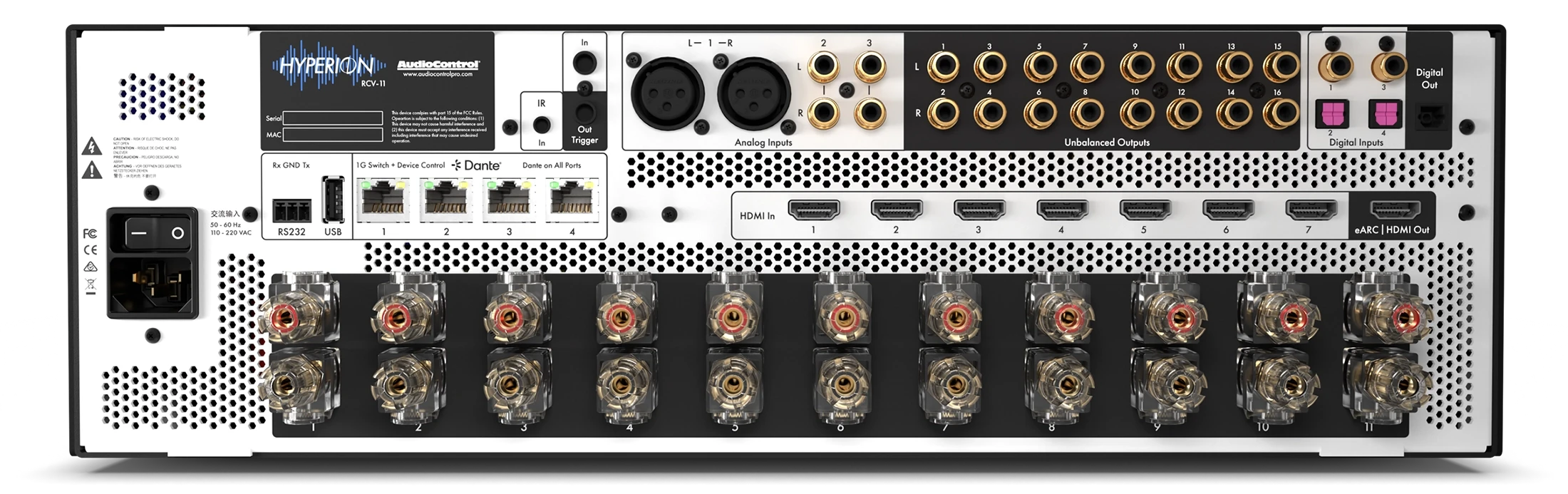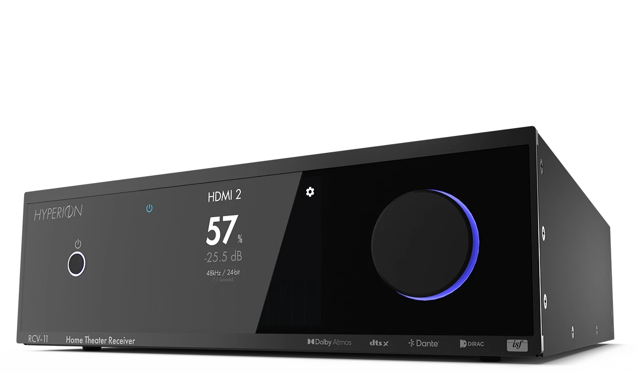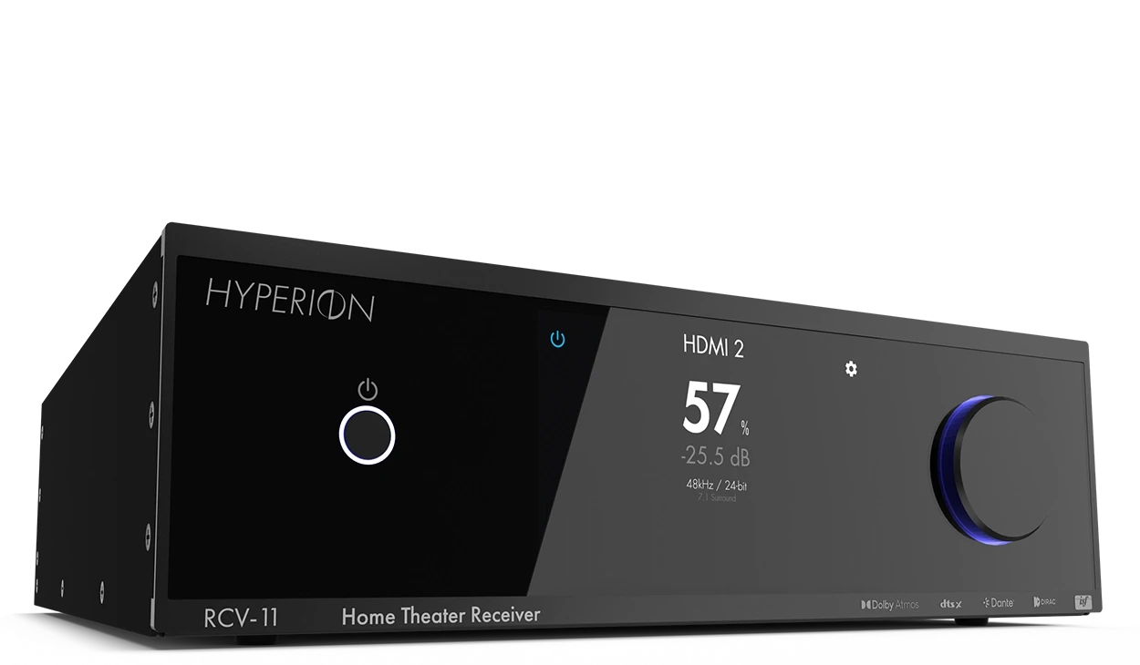 The RCV-11 fully leverages DIRAC-licensed technologies to minimize unwanted acoustic effects imposed by the listening environment that compromise loudspeaker performance. Dirac’s Room Correction, Bass Control, and Active Room Treatment algorithms seamlessly integrate with Hyperion’s advanced, high-performance ARM-based DSP architecture, working in real-time to balance loudspeaker response for spatially accurate, optimized playback across all audio sources.